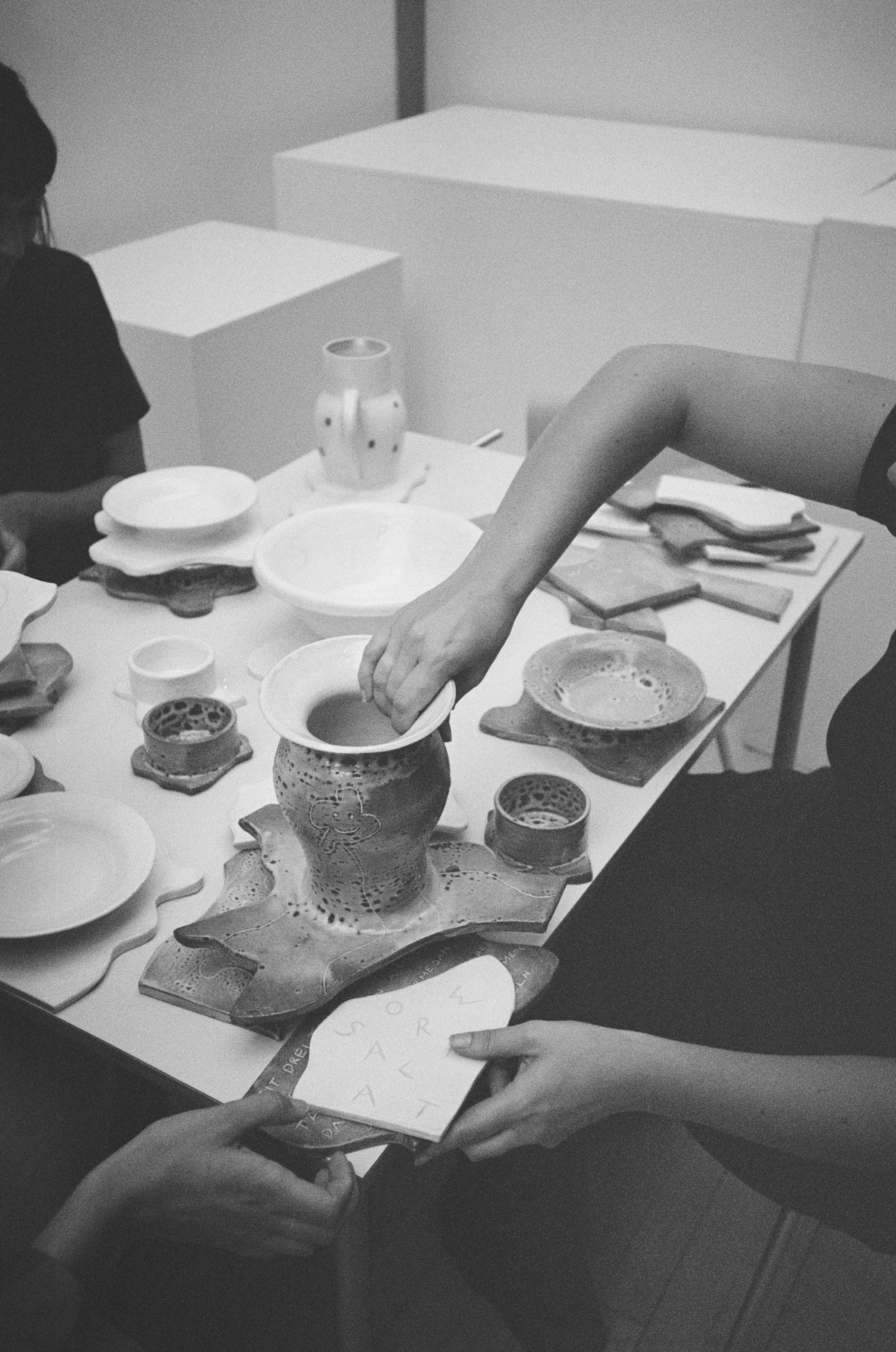 This project reimagines ceramic tableware as an interactive puzzle, including functionality with storytelling. It consists of both usable elements such as plates, cups, and bowls and sculptural pieces engraved with text or narrative fragments. Together, they transform the dining table into an active participant in the meal and entertaining role, challenging traditional dining conventions.